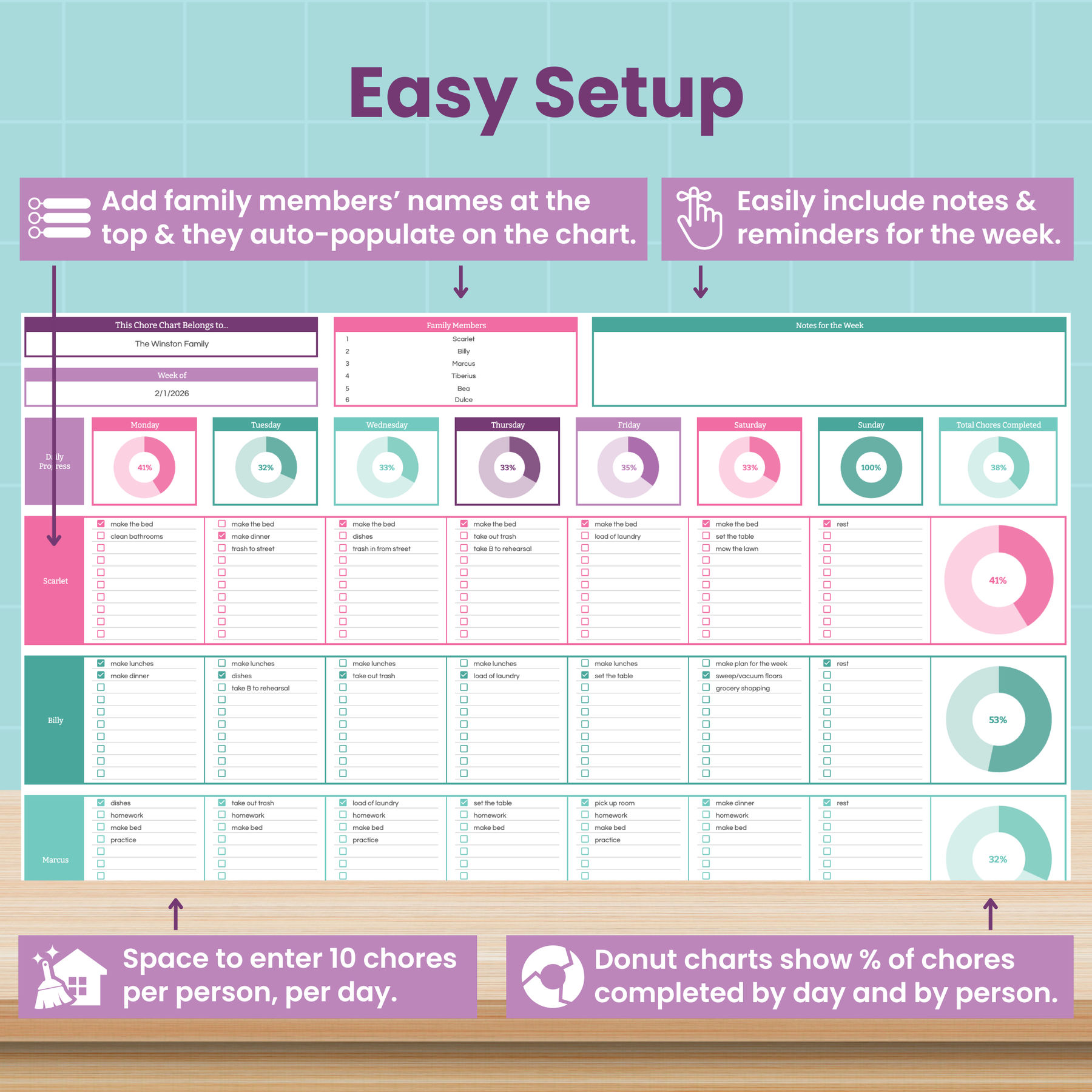 Family Chore Chart Spreadsheet for Google Sheets